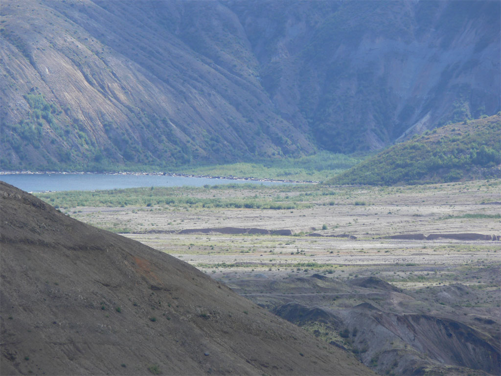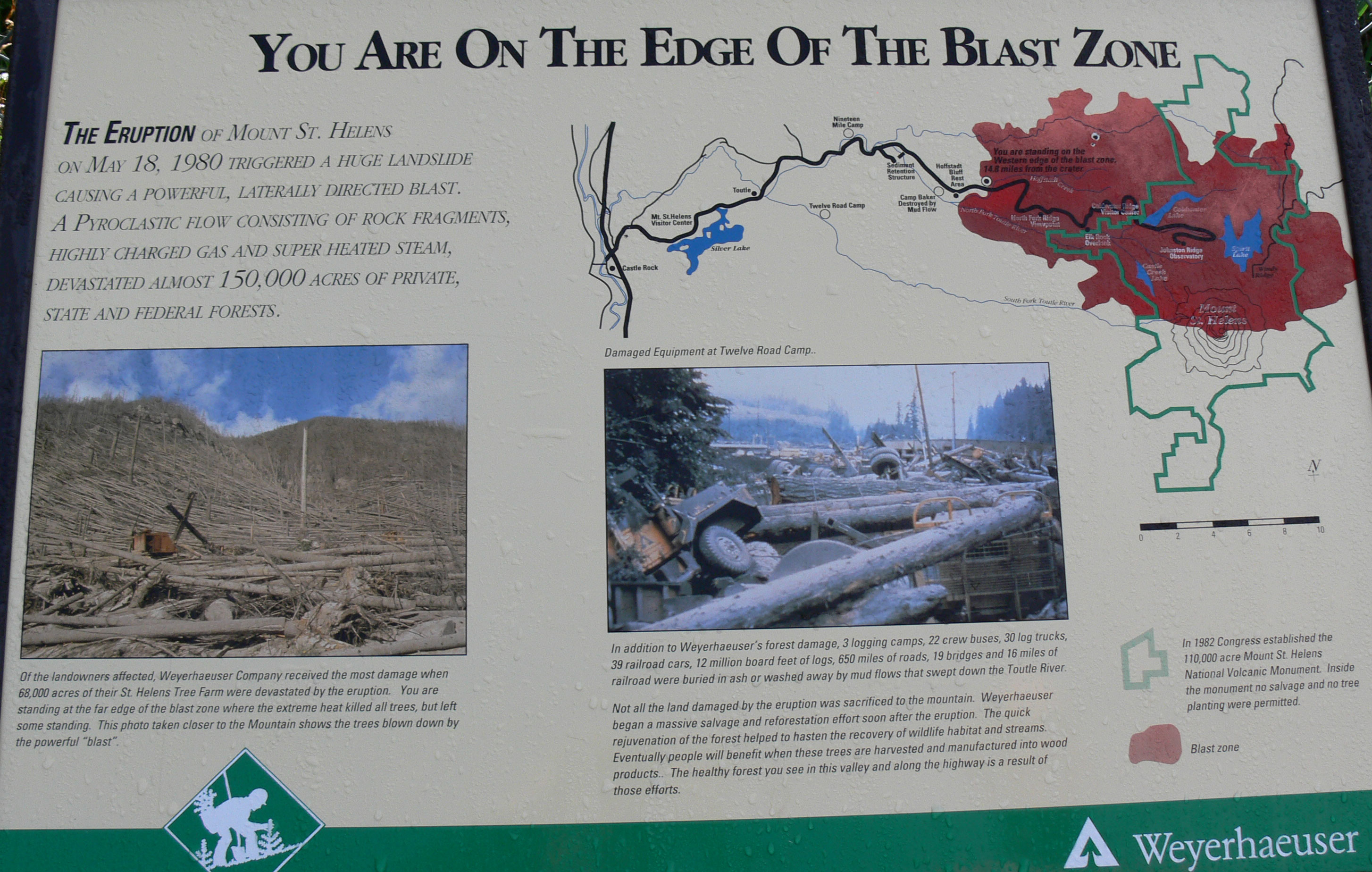 What Ronald and I both came away with was the impression of the immense power of this blast. Apparently the event started with the largest landslide in recorded history. The entire 1300-foot top of the mountain suddenly collapsed and flowed down into the valley beside it towards the peak we were standing on, which was seven miles away. It flowed