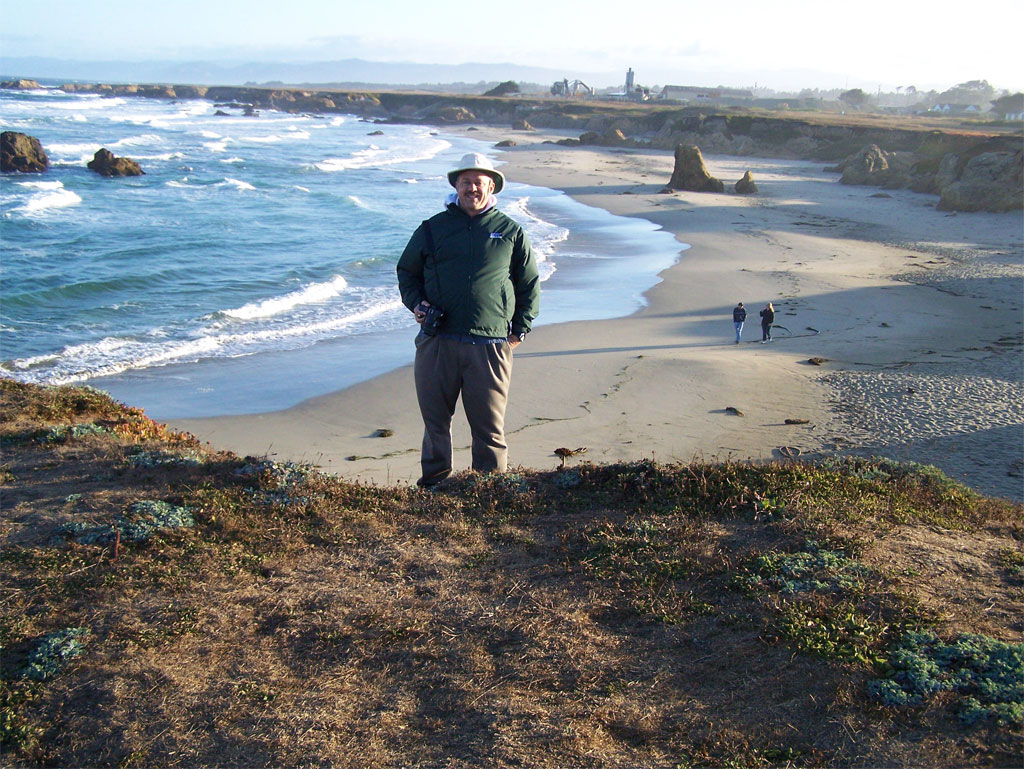 The cottage we were staying at in Fort Bragg was about 1000 yards from the oceanfront cliff. This is quite a dry area, with many succulent plants (dry with thick leaves) scattered amongst the sand dunes. When we got to the edge of the cliff, we figured it was about 40 feet down to the sand. There were no stairways. We decided to stay on top and content ourselves with taking pictures. I could see kelp growing right where the waves were hitting. There seemed to be a great deal of kelp in the water here, almost like an underwater cornfield.