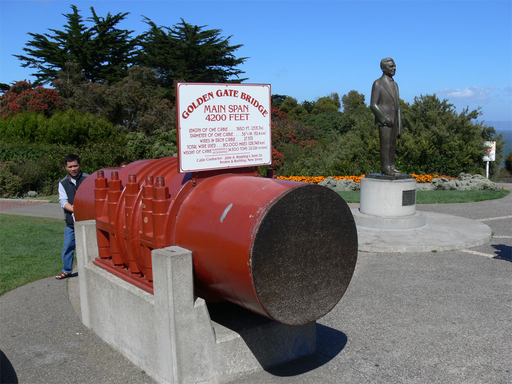 When you are up close to the Golden Gate Bridge, you realize how far it is between the two towers, some 4200 feet. They had a sample of the cable at the