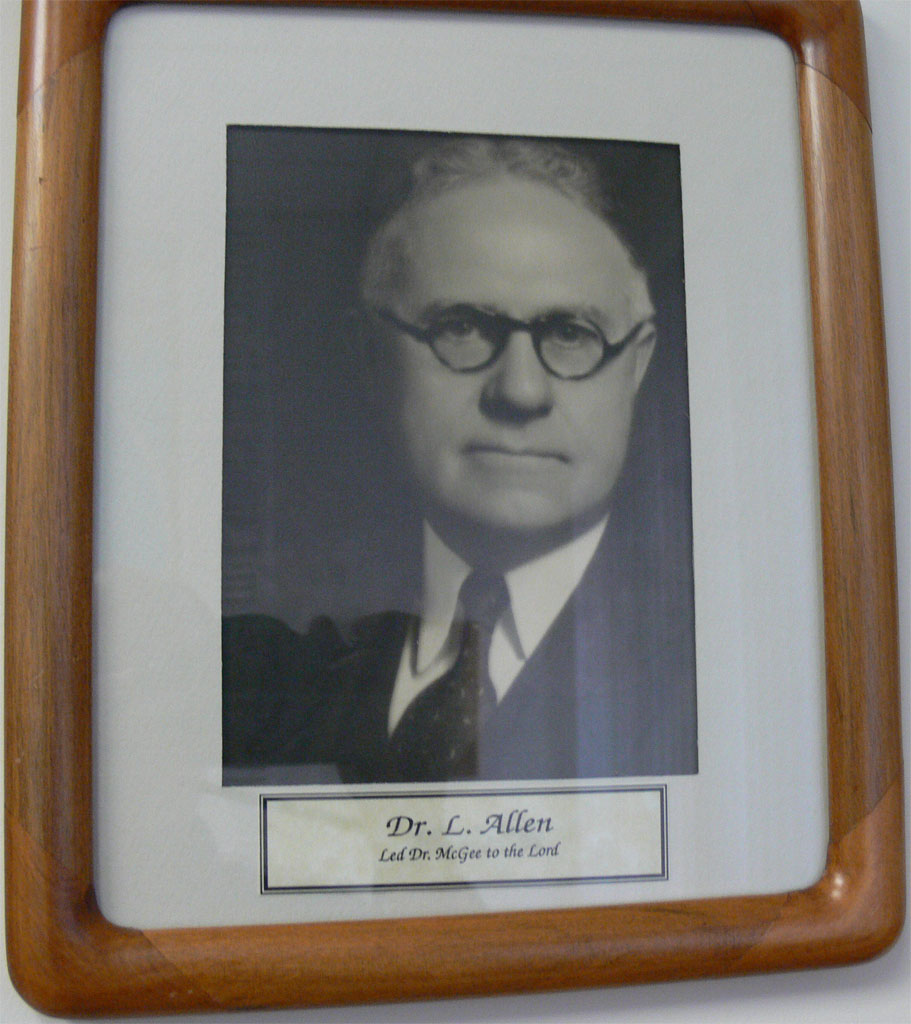 The second was Dr. L. Allen, who led Dr. McGee to the lord as a teenager, and was also his pastor, I believe.