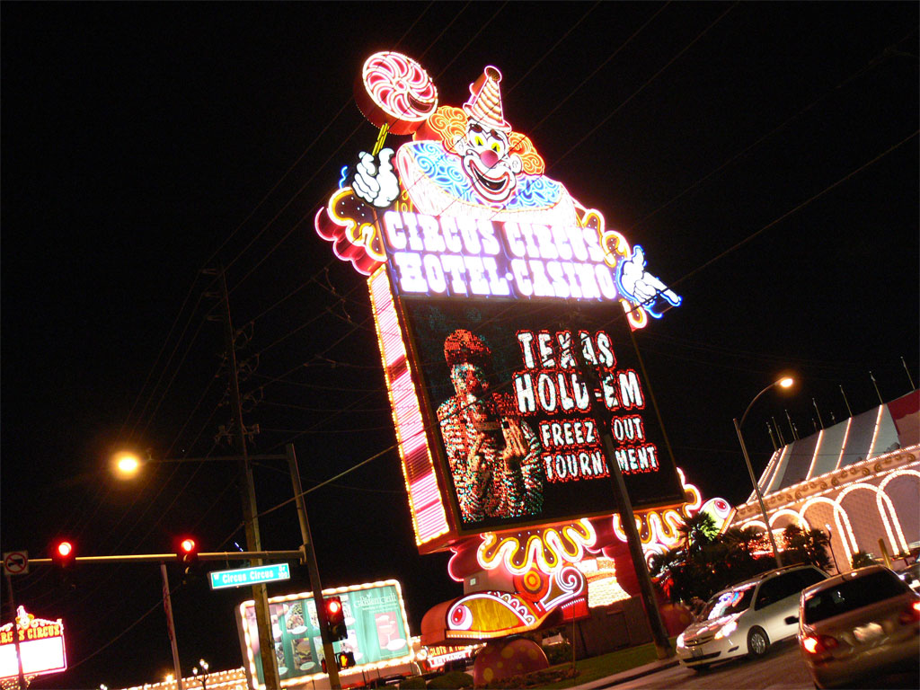 After supper, around 8:00, we drove up and down the strip a couple times to gawk at all very lights. I must say, Americans go in for the huge signs. Most of it was quite beautiful, but there were a few tacky signs as well. The scale of the signs was amazing, with one of the 20-storey apartment buildings being wrapped in one huge sign. It was the type of rap that they put on the sides of buses, but this sign covered at least 10 stories of that building. There were miniature replicas of the Eiffel tower, a CN-type tower, a circus, and Treasure Island. Double-decker buses for public transit were everywhere. The one thing that stood out was the multitude of gigantic TV screens. About every second building had a moving coloured sign in front, rather than the typical plastic sign lit up.
