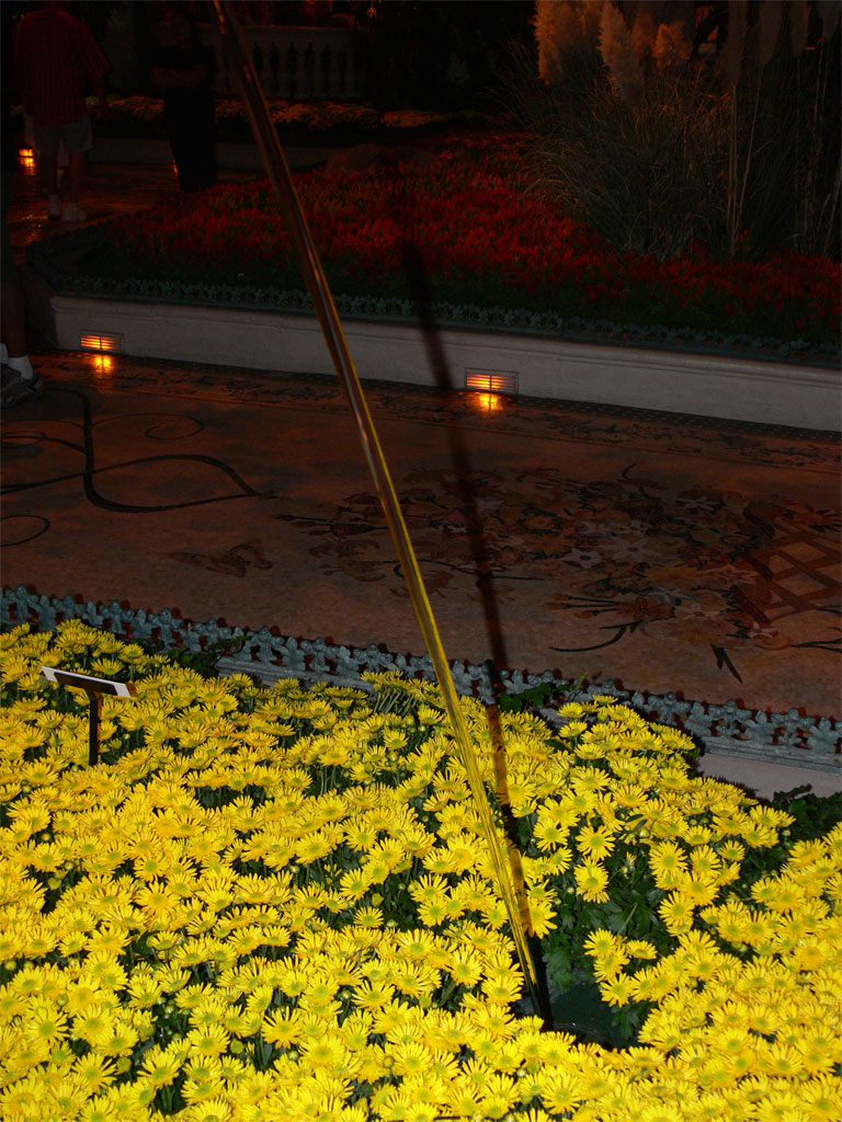 They also had an interesting sculpture of a mythical live tree, holding all kinds of pumpkins, and the lobby had huge glass flowers on the ceiling. We walked outside the door, and came across to a man-made lake with a fountain and music show. A fountain shot 100 feet in the year, swirled around, and multicoloured lights shone, all to the sound of music. We watched for a few moments, and then moved on, as our goal was the building next door.